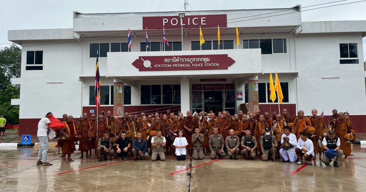 พ.ต.ท.พรชัย แสงศิลา สวญ.สภ.กกตูม พร้อมข้าราชการตำรวจและแม่บ้านครอบครัวตำรวจ ร่วมกับโครงการจาริกธุดงค์ธรรมยาตรา จากวัดบ้านแจ้งสู่พระธาตุพนม ของคณะสงฆ์ อุบาสกอุบาสิกา วัดบ้านแจ้ง ต.ตานิม อ.บางปะหัน จ.พระนครศรีอยุธยา ดำเนินกิจกรรมเดินธุดงค์ จาก อ.เขาวง เข้ามาในพื้นที่ สภ.กกตูม จำนวน 70 รูป อุบาสกอุบาสิกา จำนวน 30 คน ซึ่งได้แวะพักใช้บริการพื้นที่อาคารสถานที่ สภ.กกตูม พักฉันน้ำ-กาแฟ เครื่องดื่ม อาหารว่างตอนเช้า ณ สภ.กกตูม เสร็จแล้วคณะสงฆ์ฯ ได้ร่วมกันออกเดินธุดงค์เข้าสู่เขต จ.สกลนคร เจ้าหน้าที่ตำรวจร้อยเวร 20 จราจร ได้รักษาความปลอดภัยและอำนวยความสะดวกด้านการจราจร ต่อไป