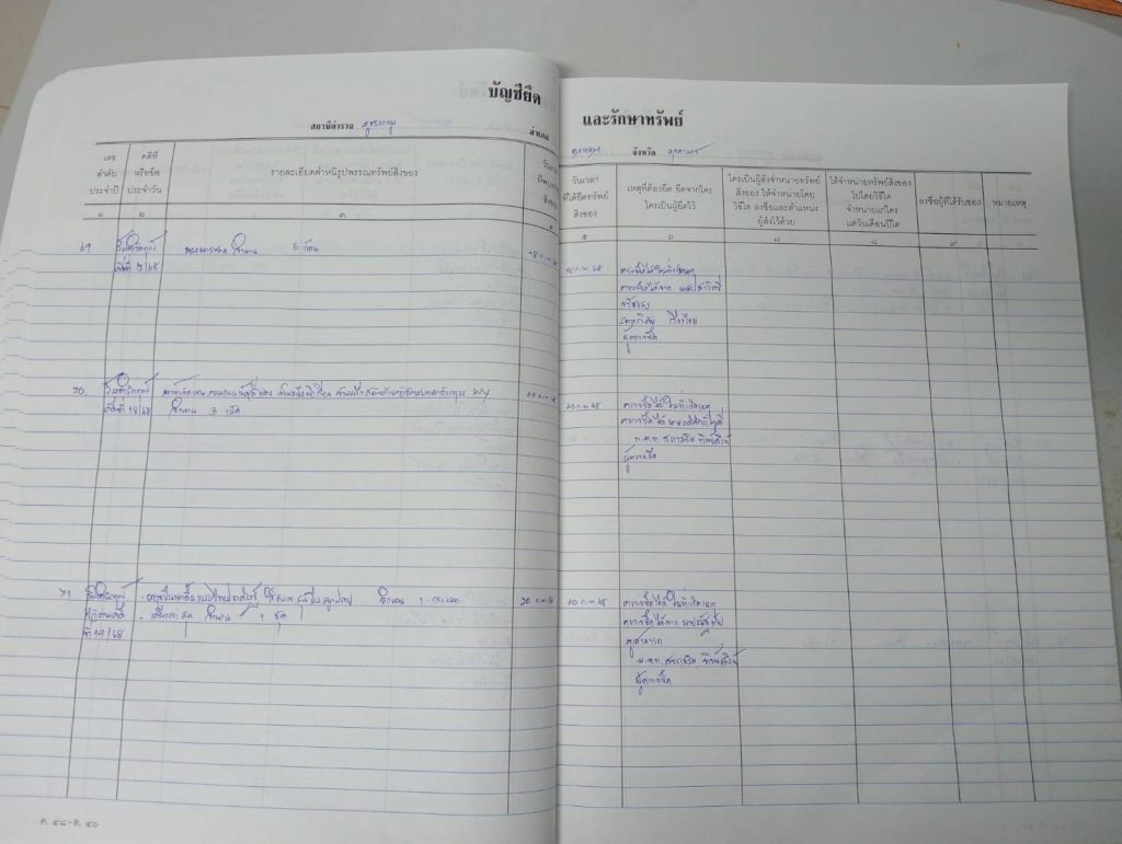 รายงานผลการปฏิบัติเกี่ยวกับการจัดการทรัพย์สินของทางราชการ ของบริจาค การจัดเก็บของกลาง
